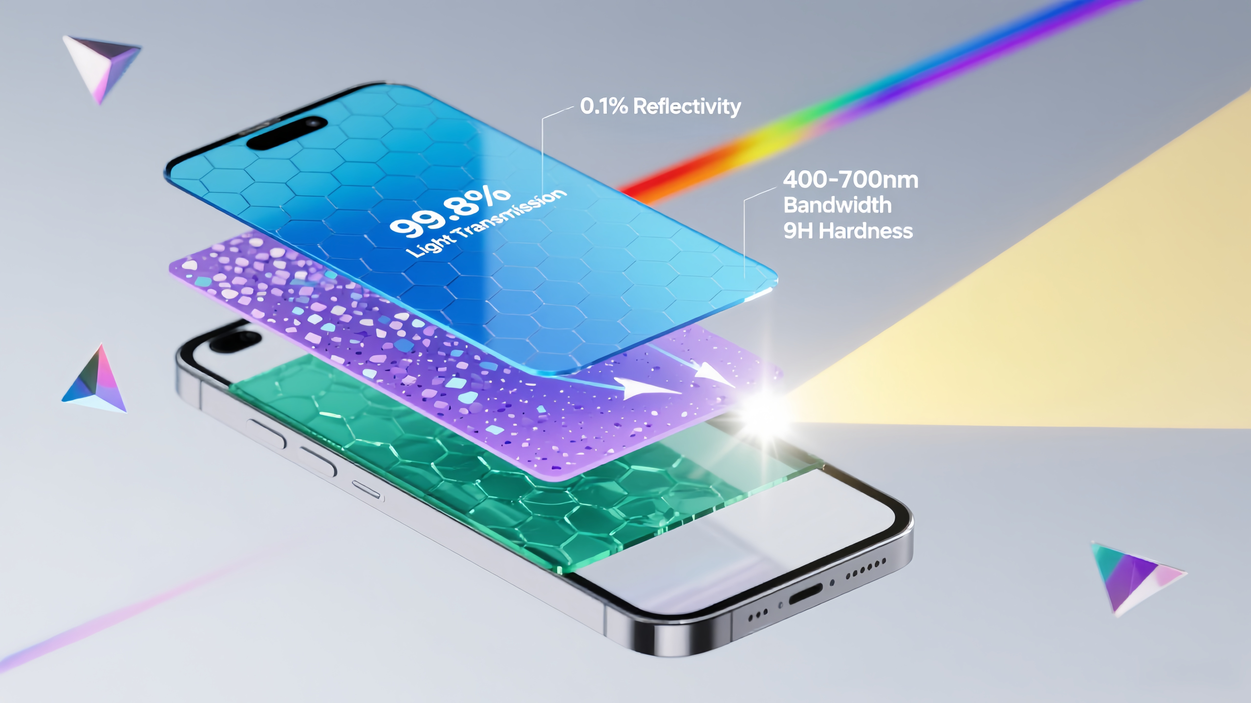 AR coating involves applying a thin, transparent layer onto the surface of lenses or screen cover glass to minimize the reflections caused by light bouncing off the surface. This coating uses a microscopic structure that cancels out reflected light waves through destructive interference, allowing more light to pass through. The result is a clearer, brighter image with less distracting glare.