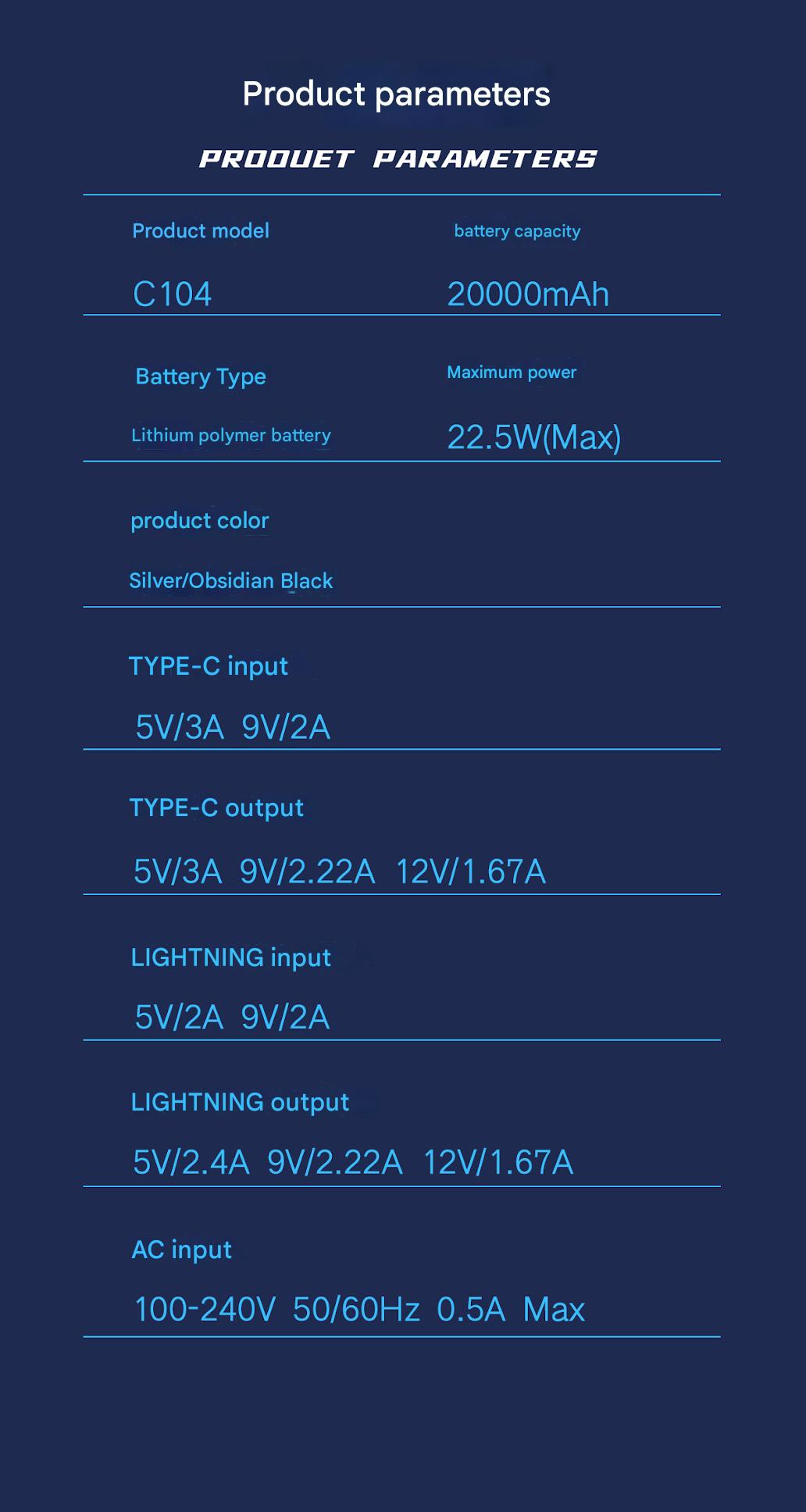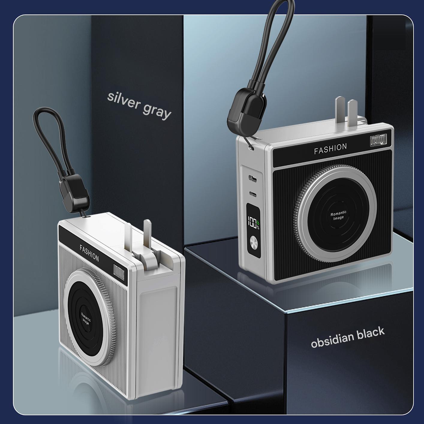 20000 mAh 3-in-1 Function, Camera-designed Power Bank, 22.5 PD Fast Charging, 15W Magnetic Wireless Charging, High-stability AC Plug, Magnetic Bracket Design, With Lightning And Type-C Conversion Cable.
