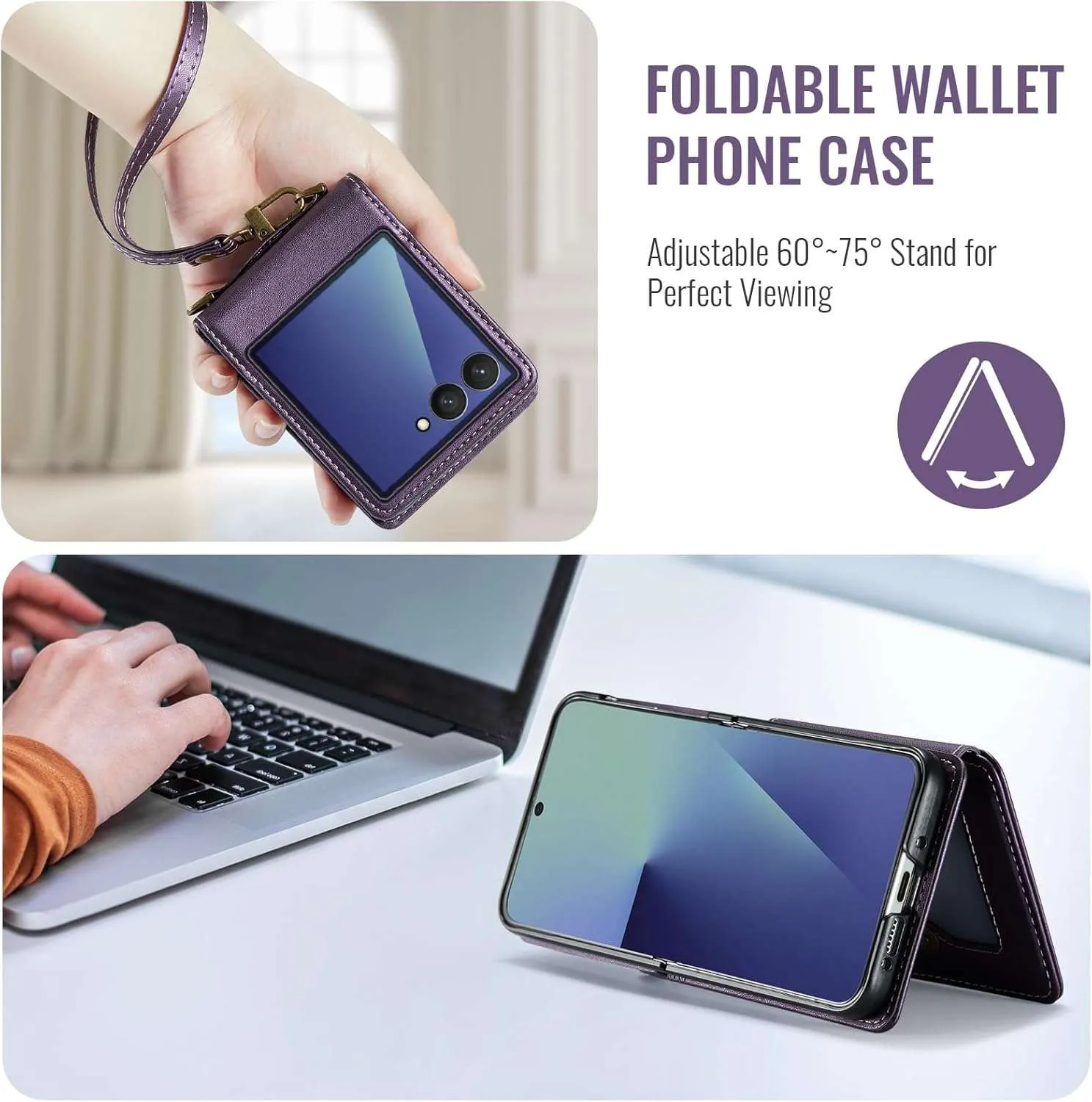 This Samsung Galaxy Z Flip 7 wallet case is made of premium PU leather and is designed to protect your phone from scratches, drops, and other damage also RFID Blocking.