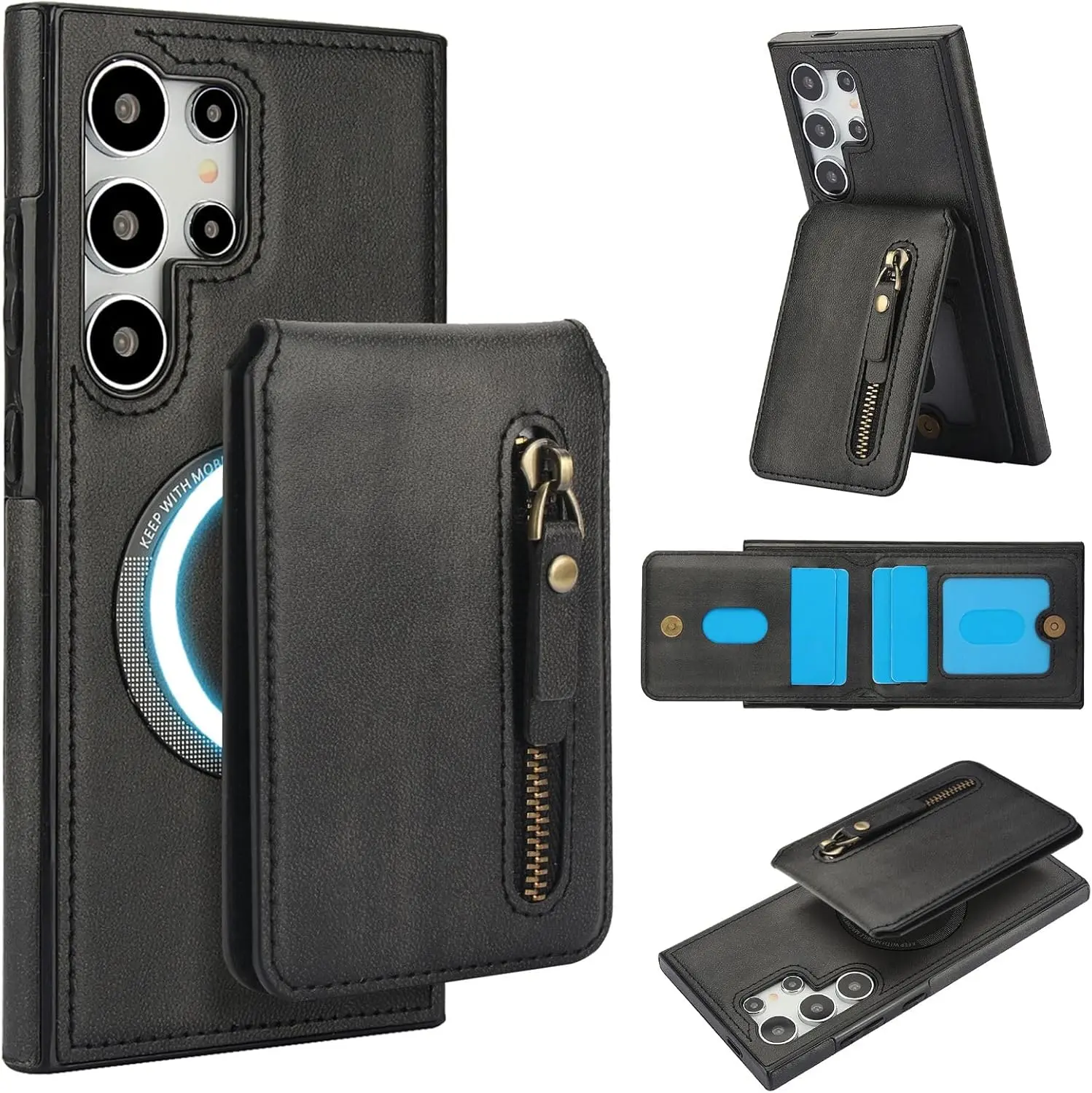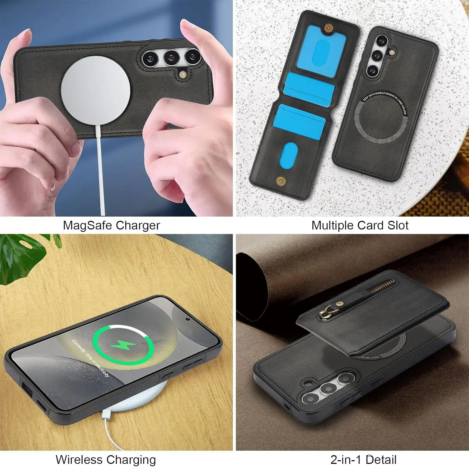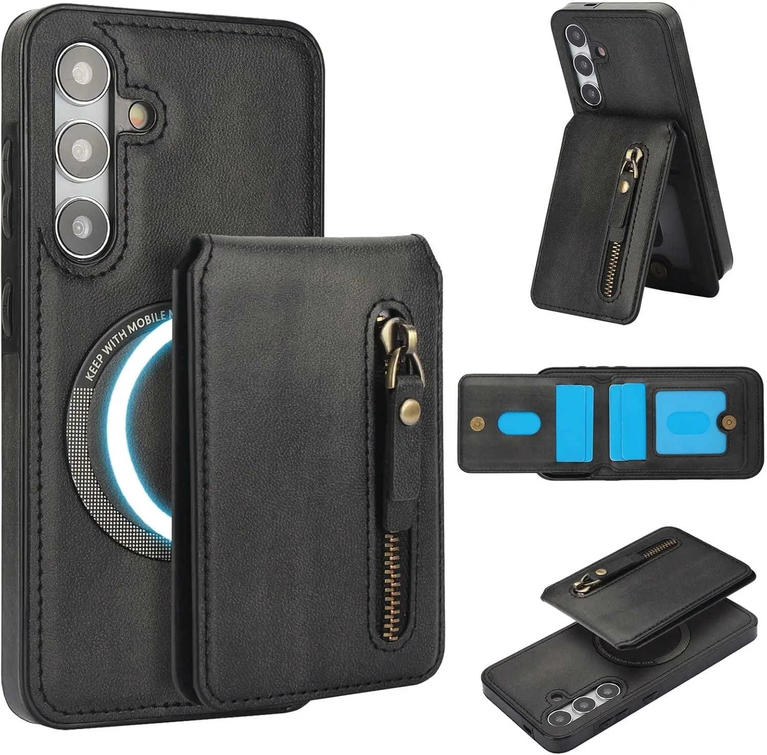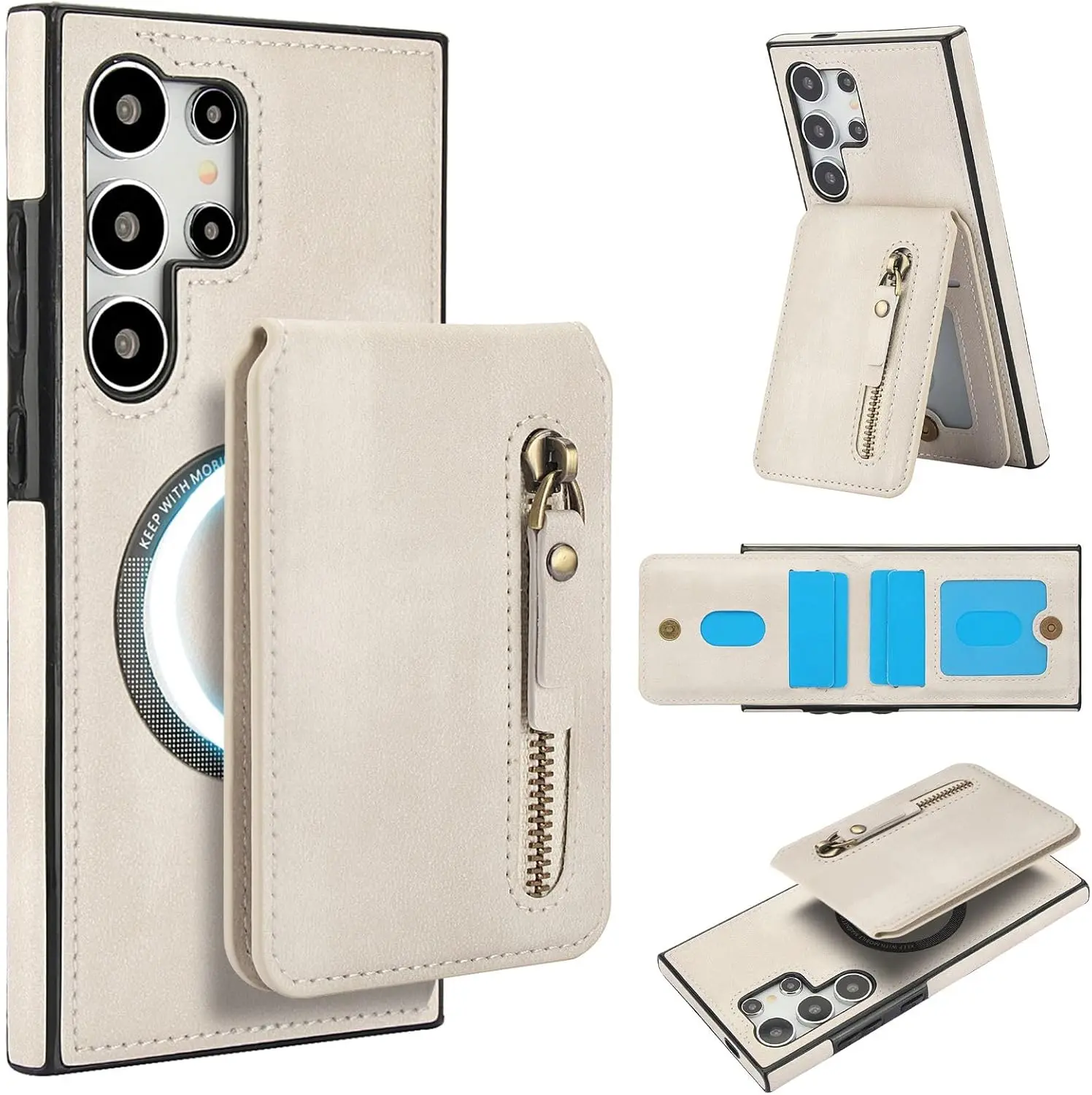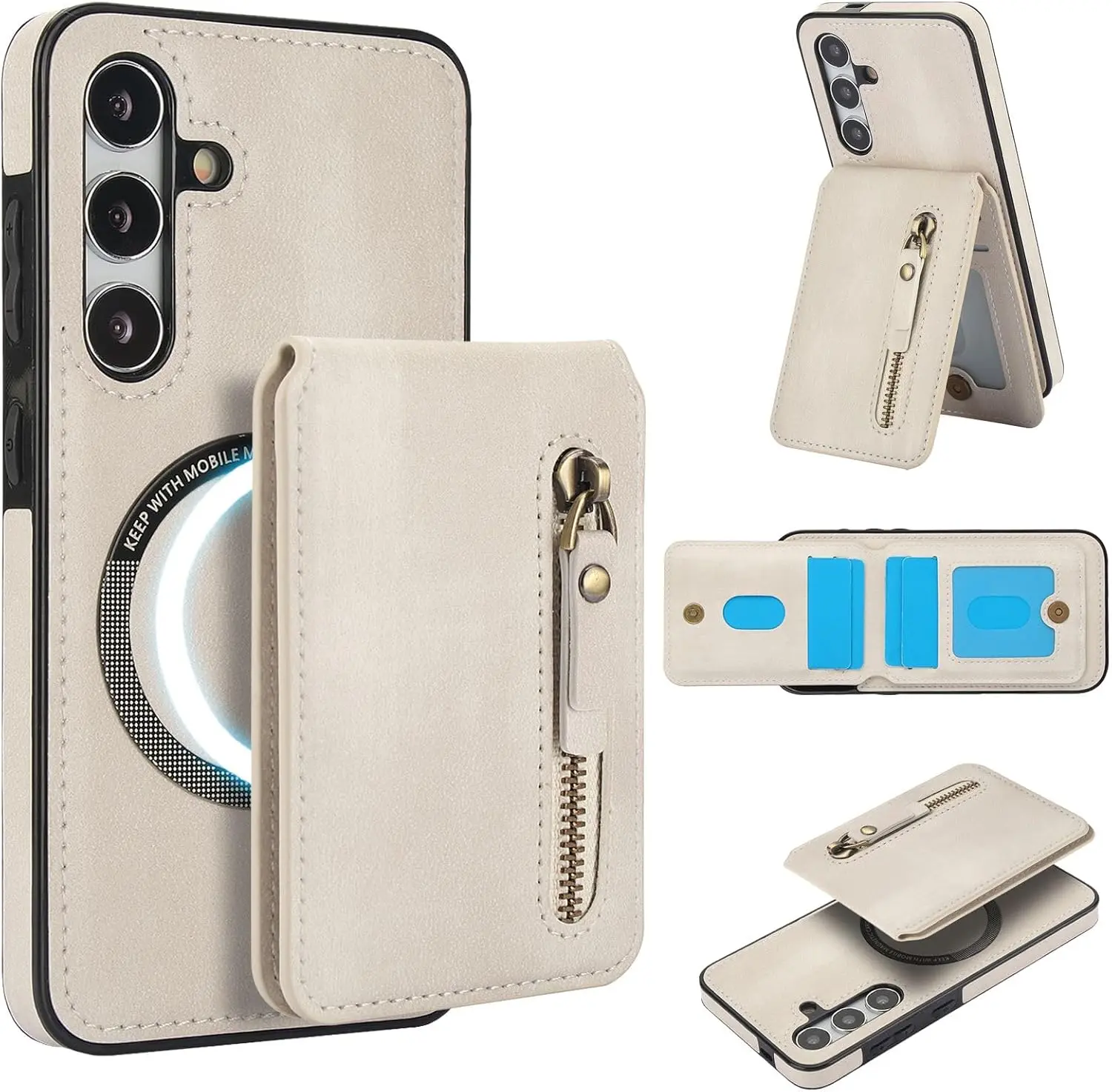 Convenient 2-in-1 Wallet: Including 1 Zipper Pocket and 4 Card Slots. The Wallet has Built-in Strong Magnets and can be disassembled and used alone at any time. It can also be Compatible with iPhone and other Phone without case, or other magnetic phone cases.