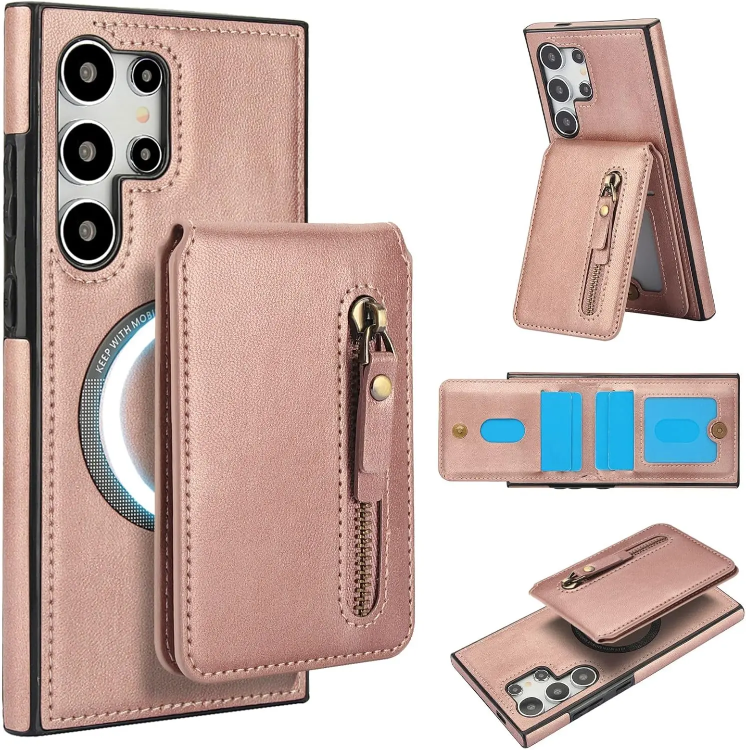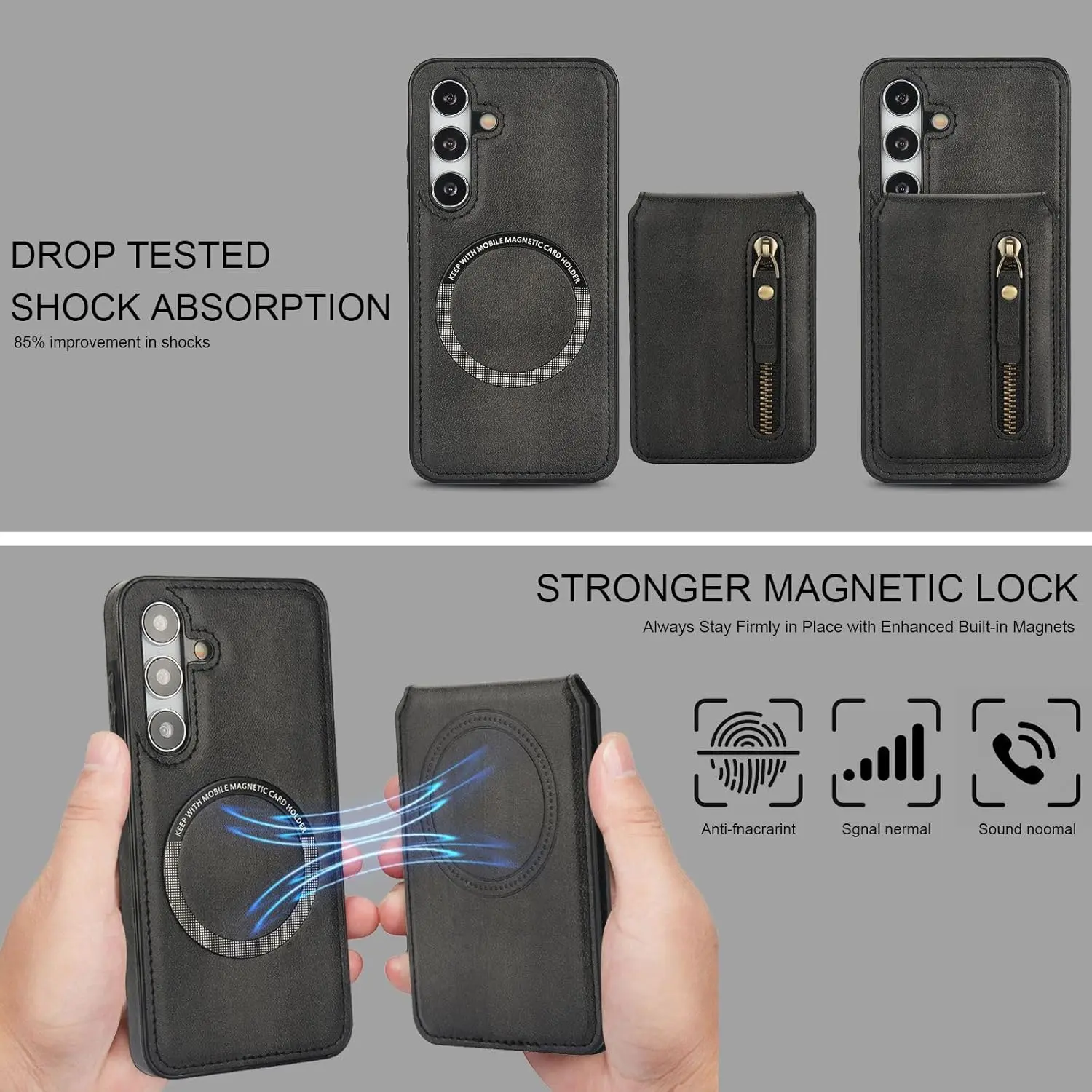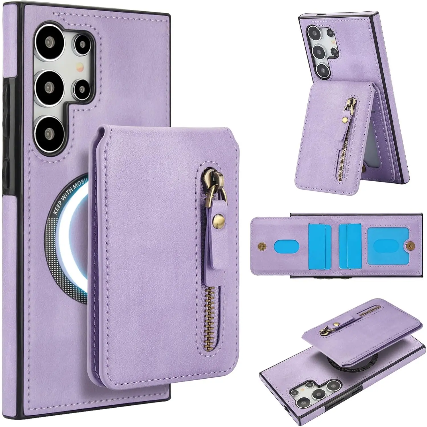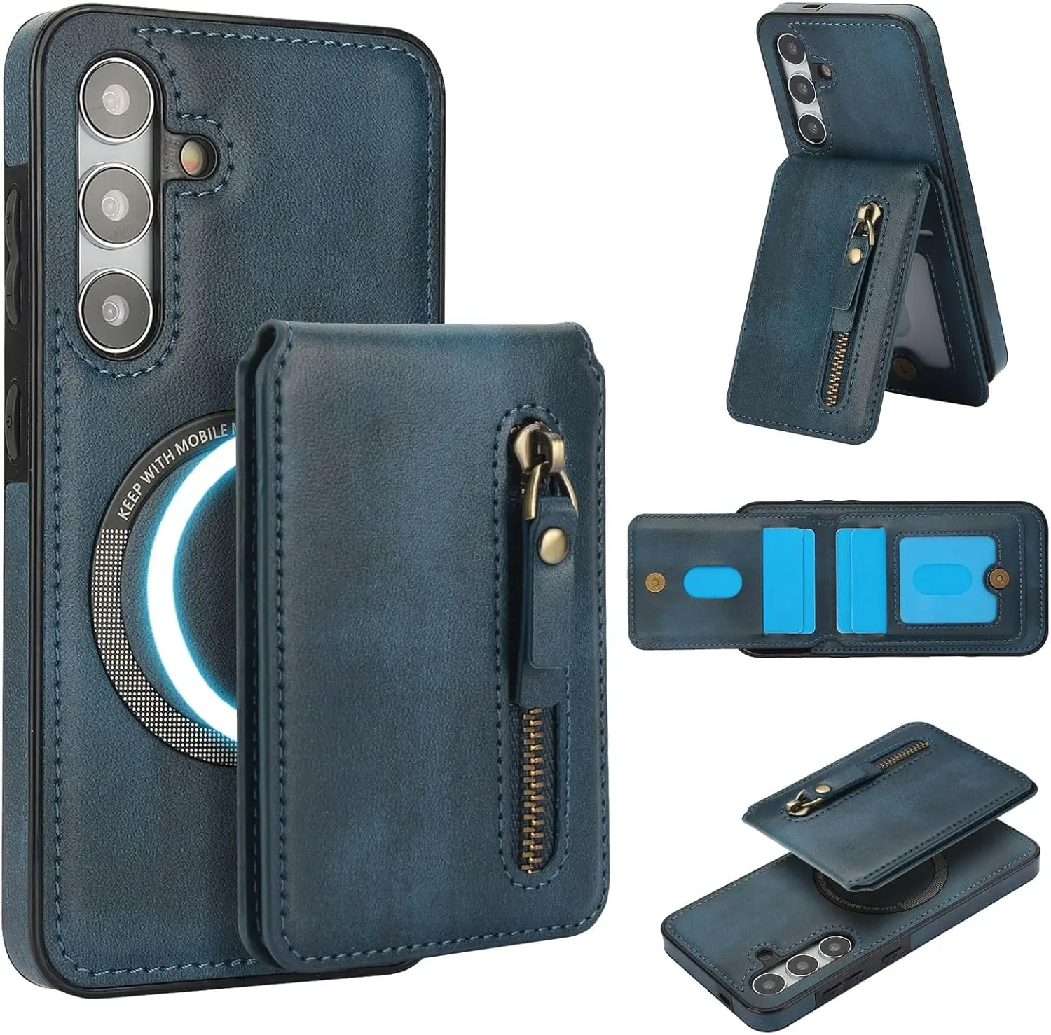 Convenient 2-in-1 Wallet: Including 1 Zipper Pocket and 4 Card Slots. The Wallet has Built-in Strong Magnets and can be disassembled and used alone at any time. It can also be Compatible with iPhone and other Phone without case, or other magnetic phone cases.