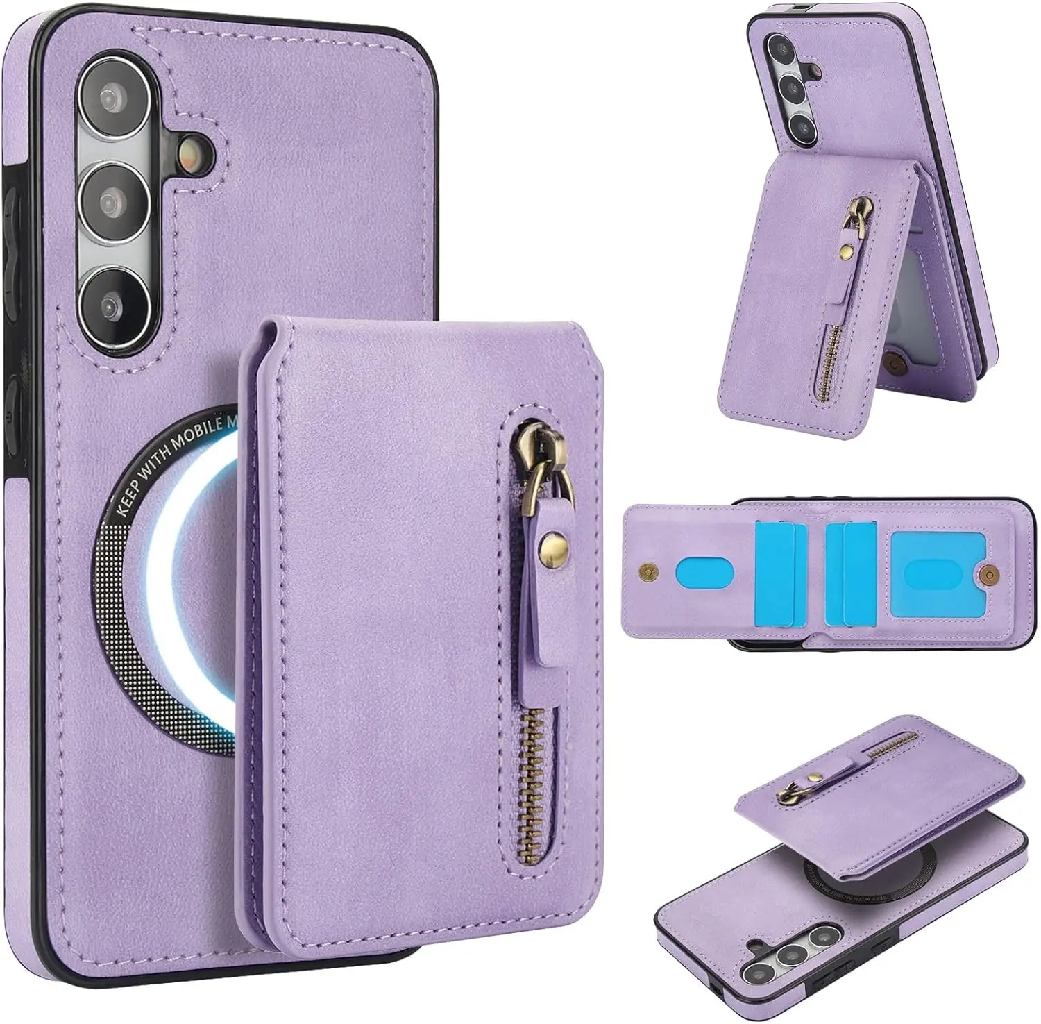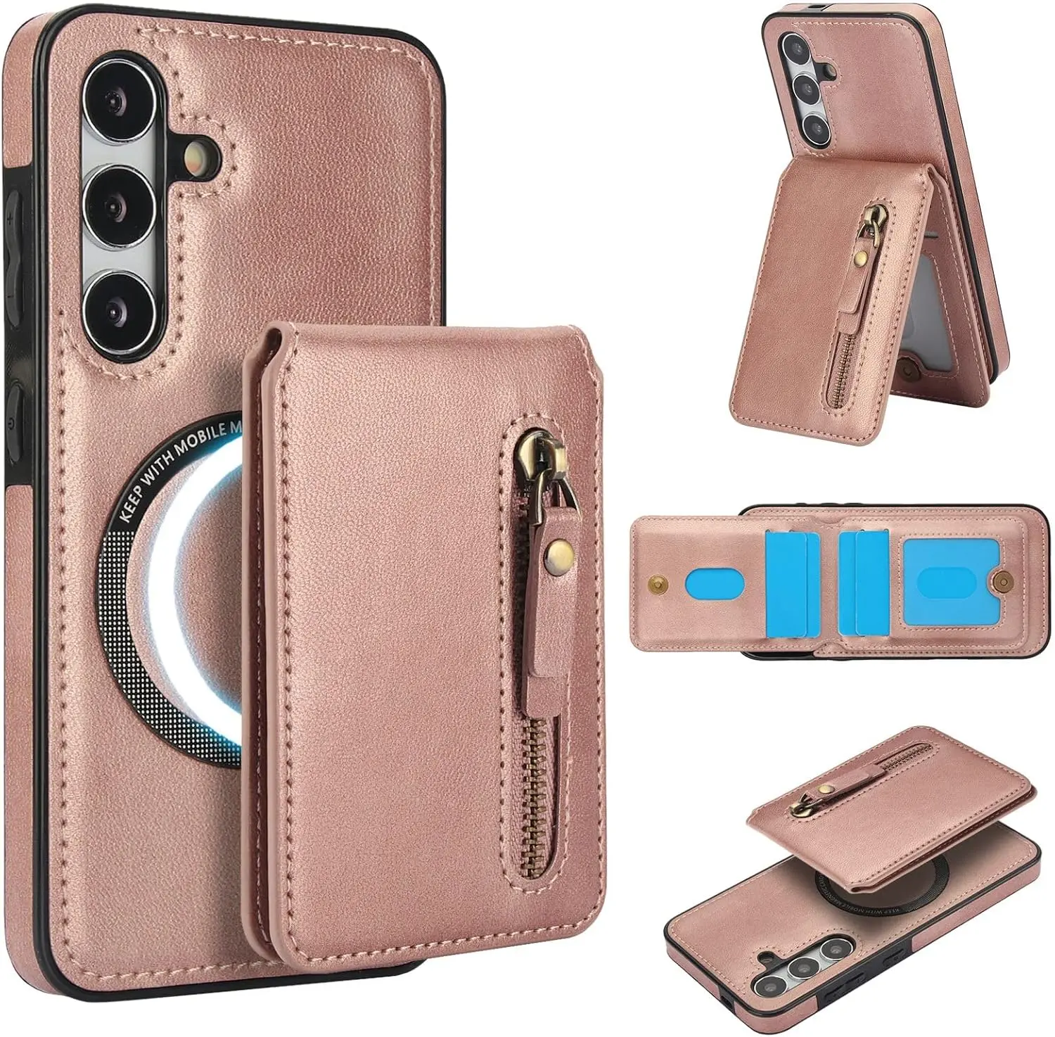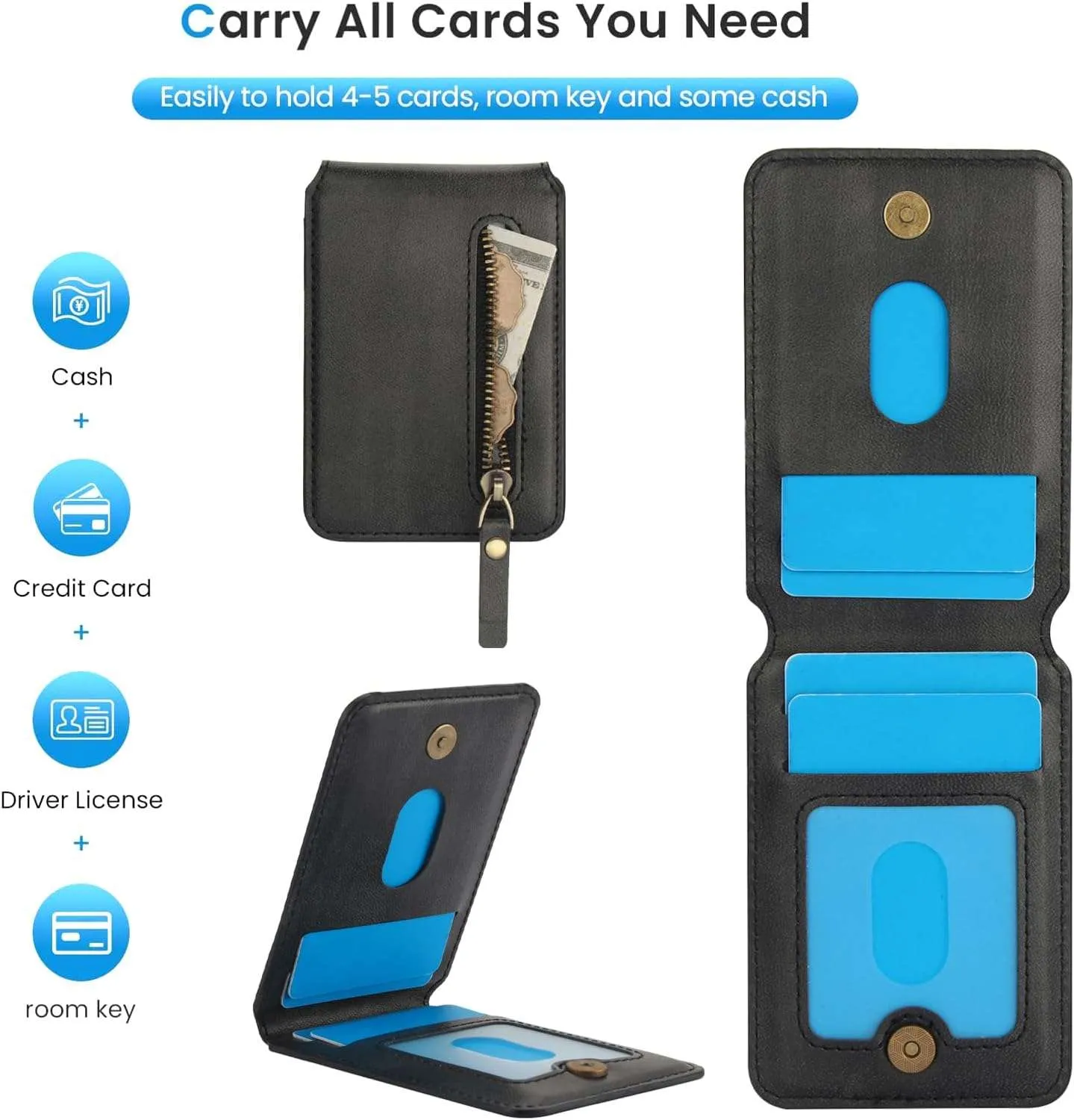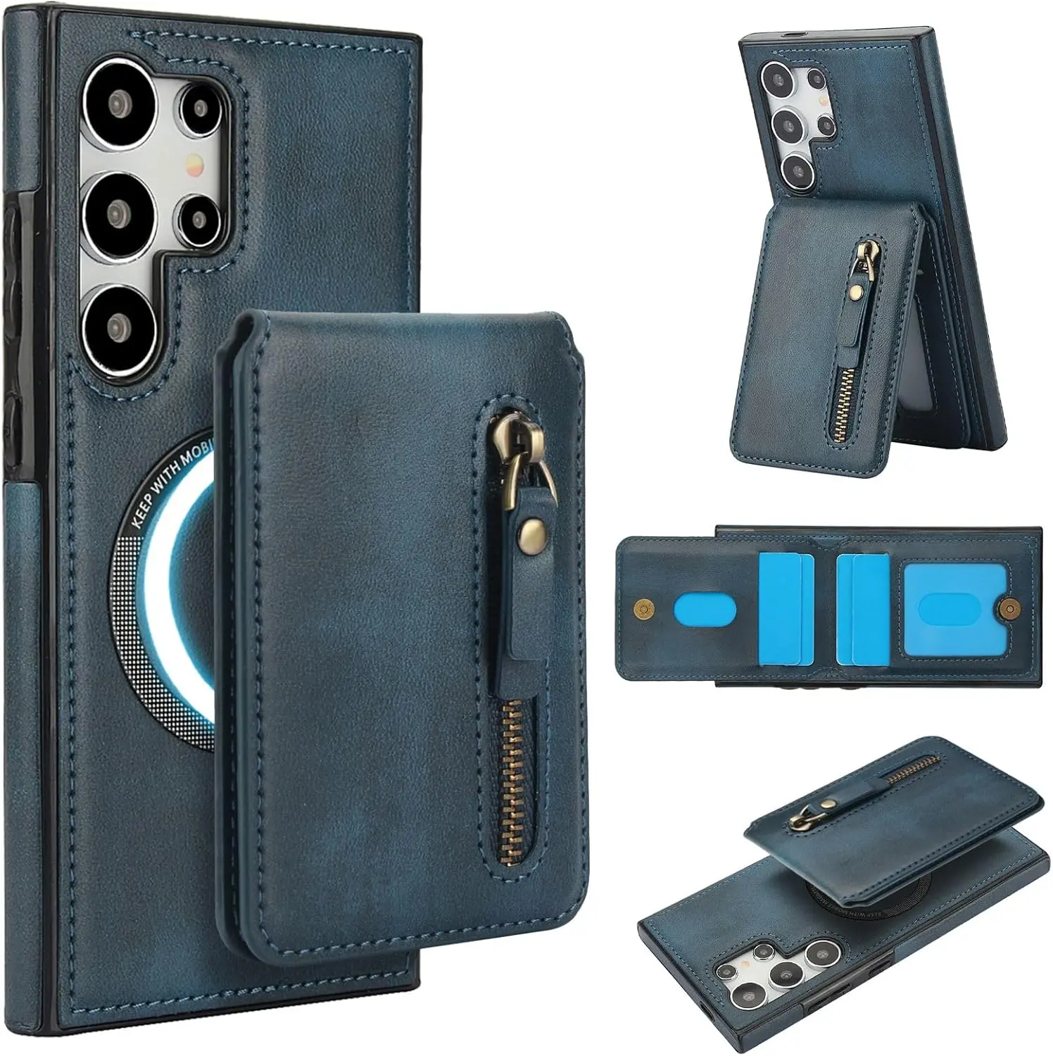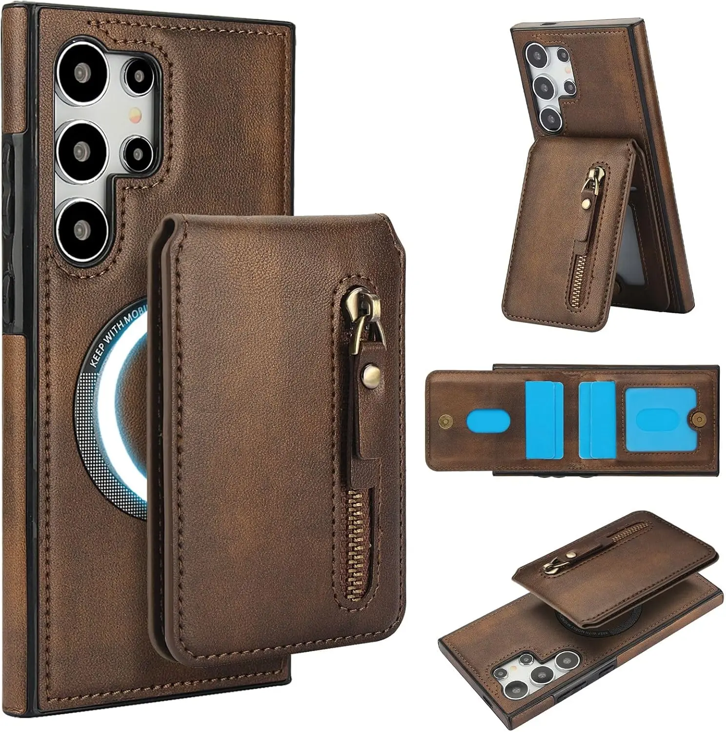 Convenient 2-in-1 Wallet: Including 1 Zipper Pocket and 4 Card Slots. The Wallet has Built-in Strong Magnets and can be disassembled and used alone at any time. It can also be Compatible with iPhone and other Phone without case, or other magnetic phone cases.