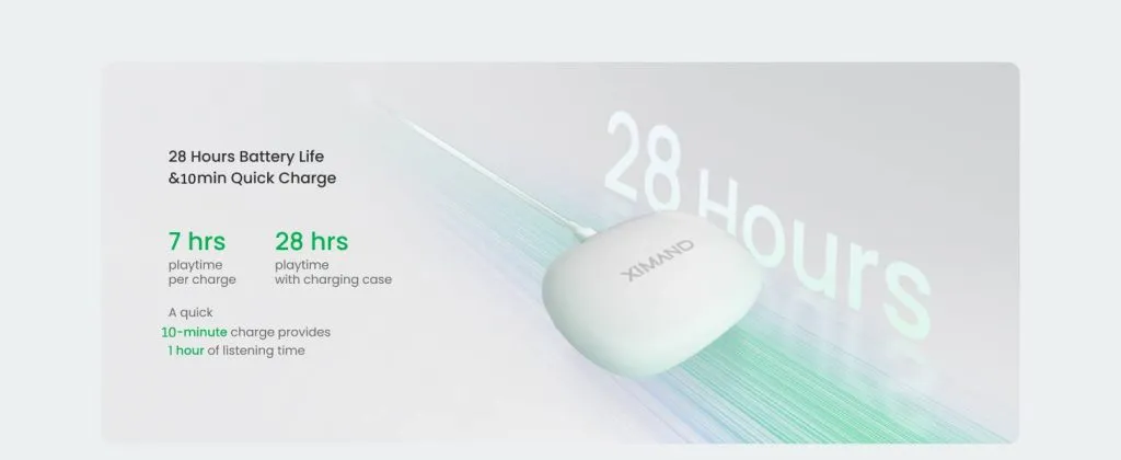 - All-Day Use: Offers up to 7 hours of continuous playback on a single charge, making them perfect for extended workouts or commutes.