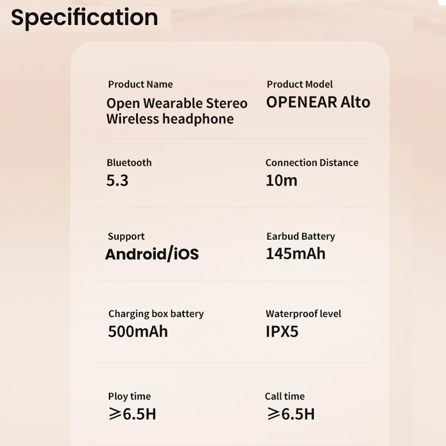 - Innovative Design: Utilizes air-conduction technology, allowing sound to be transmitted through the air, which keeps your ears open to ambient sounds.